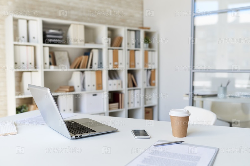Ноутбук на рабочем столе в современном офисе