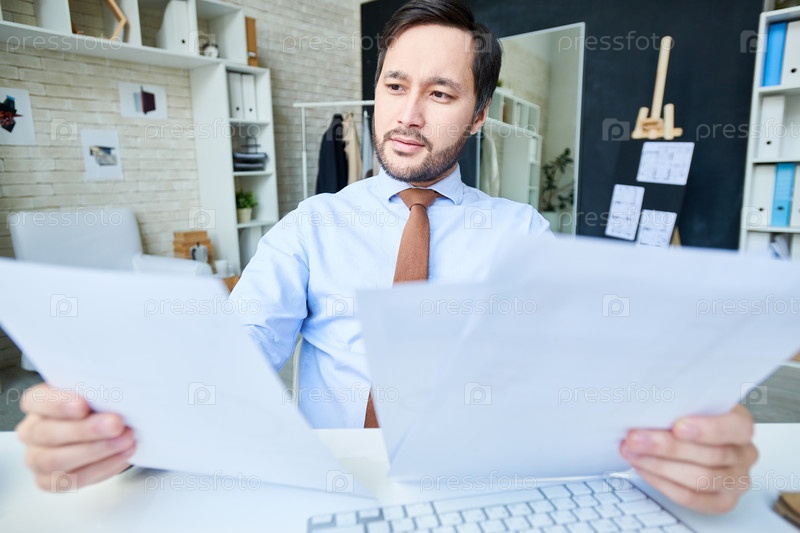 Мысленный штурм человека с документами в офисе