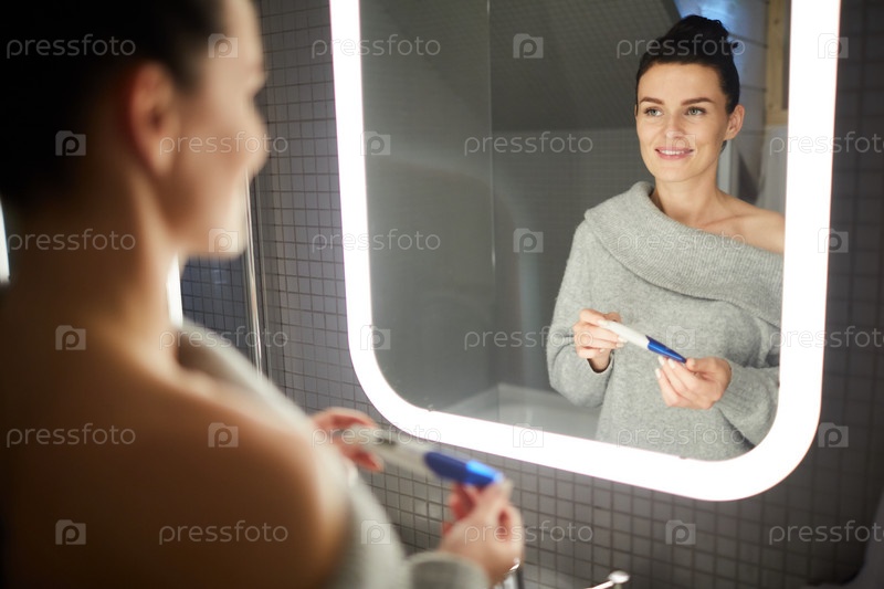 Счастливая женщина, получающая положительный тест на беременность