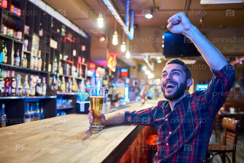 Спортивный фанат, который болеет в пабе