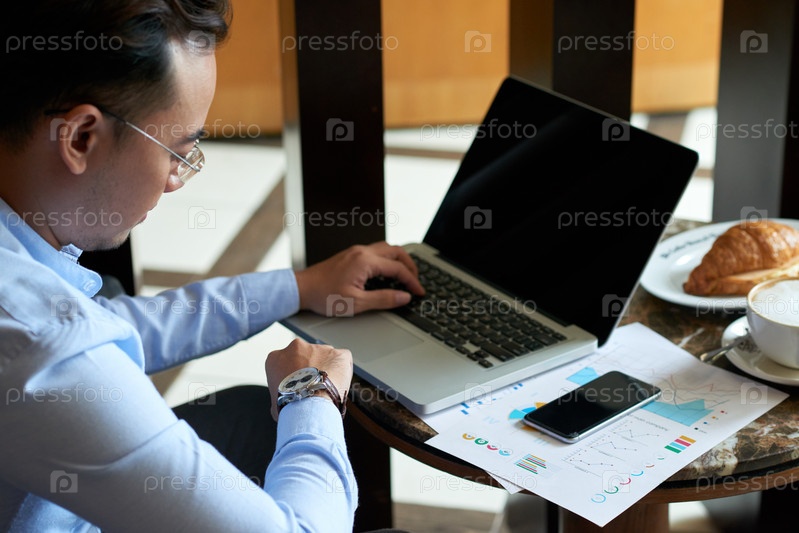 Азиатский бизнесмен, работающий в кафе
