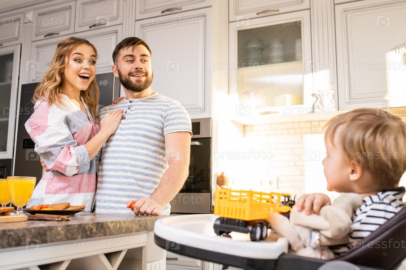 Родители смотрят на счастливого ребенка