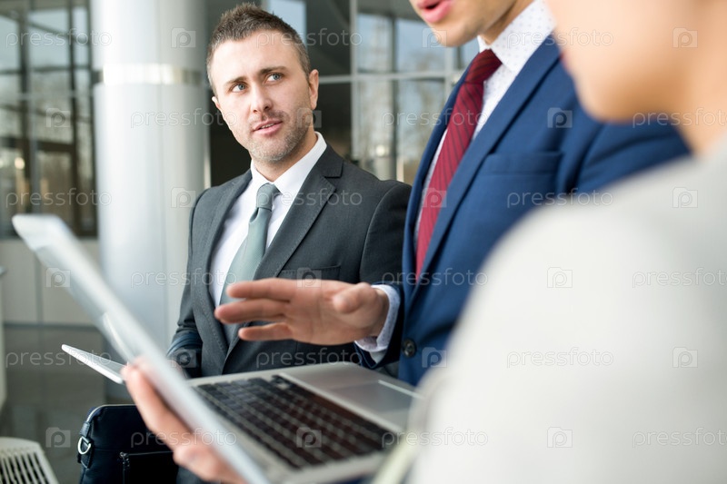 Бизнесмен, слушающий дискуссию в офисе