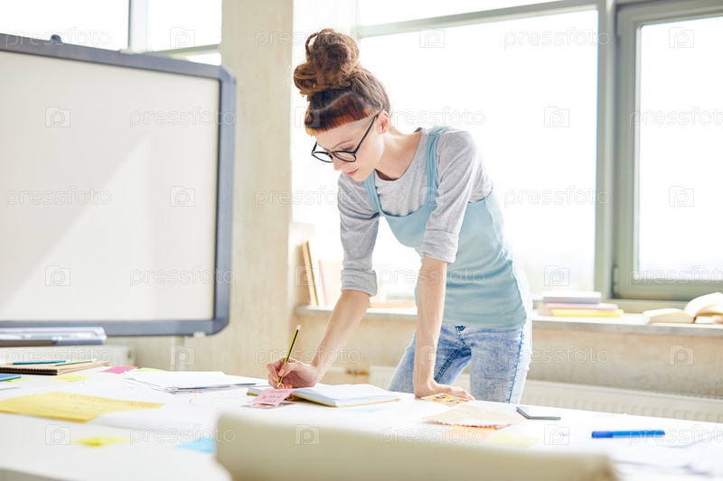 Менеджер хипстеров делает заметки в организаторе