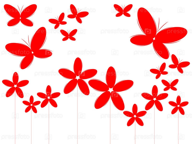 Красные бабочки на белом фоне