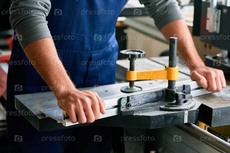 Ближайшее изображение рабочего, использующего металлическую режущую скамейку