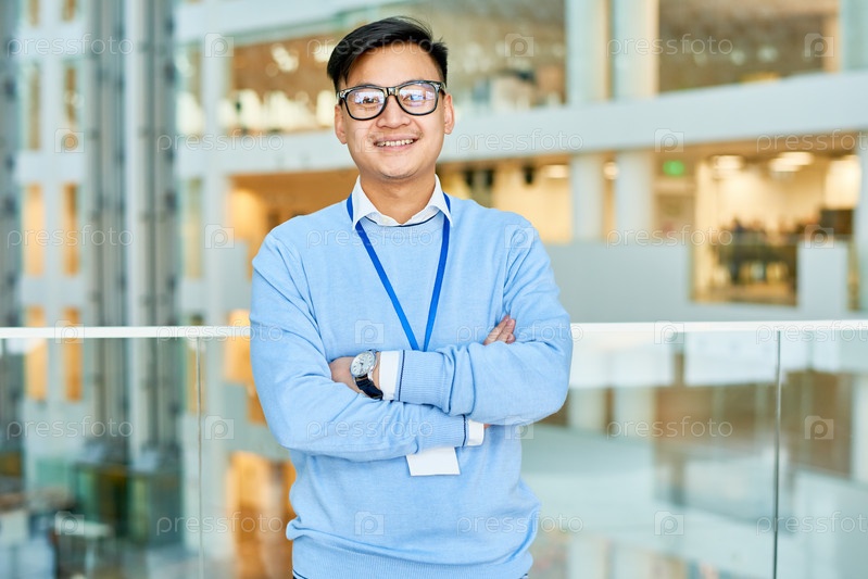 Портрет азиатского рабочего белого воротничка