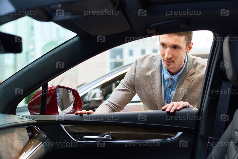 Молодой человек, выбирающий автомобиль в аренду