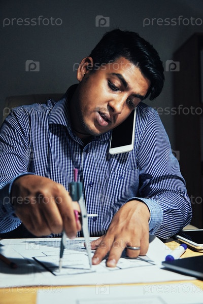 Архитектор измеряет план