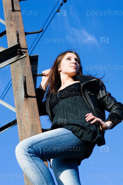 Девушка на высоковольтной вышке