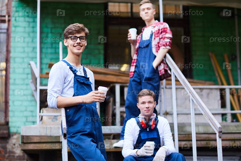 Веселые красивые парни в рабочей одежде