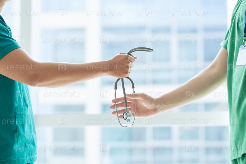 Анонимные врачи пропускают стетоскоп возле окна