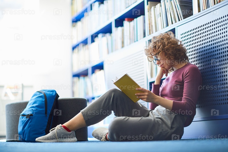 Женщина учится в библиотеке