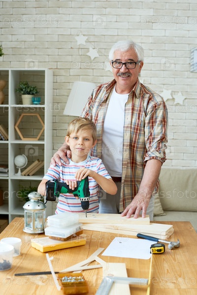 Дедушка и внук позируют для фотографии