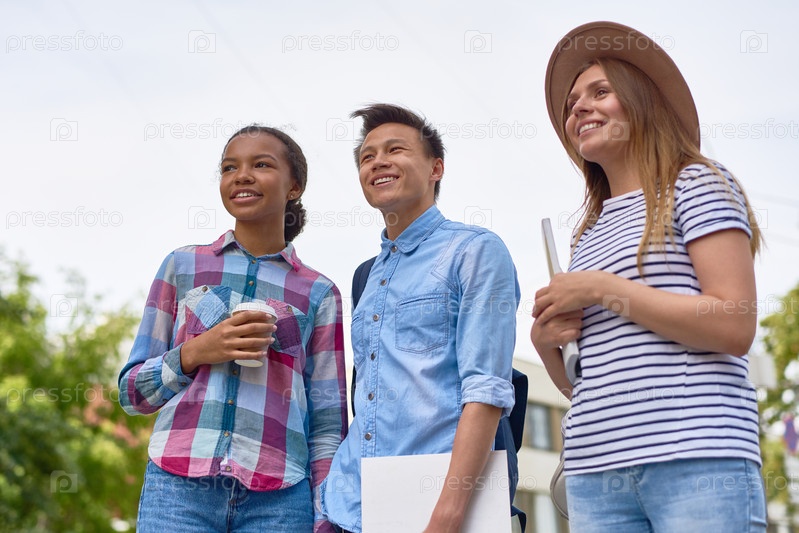 Веселые студенты на открытом воздухе Three