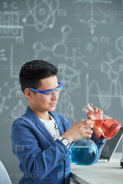 Мальчик, смешивающий реагенты