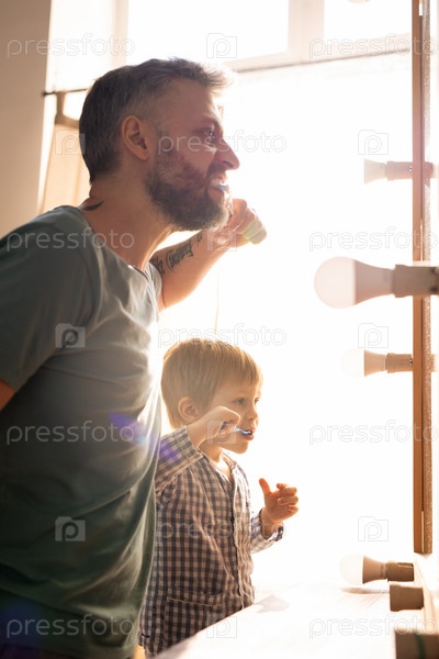 Семья чистит зубы в ванной