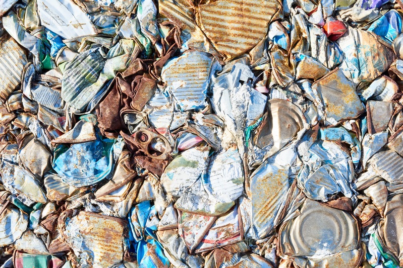 Упакованный мусор на заводе по переработке отходов