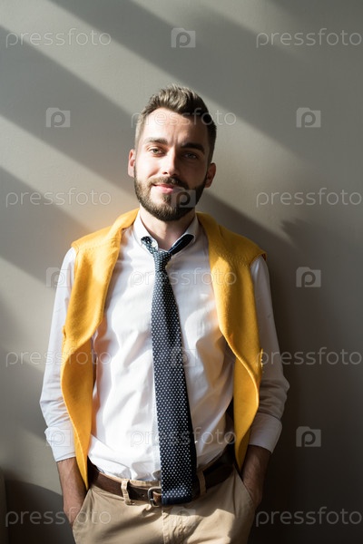 Красивый мужчина позирует на стене