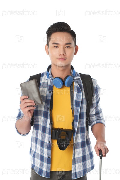 Молодой турист с паспортом