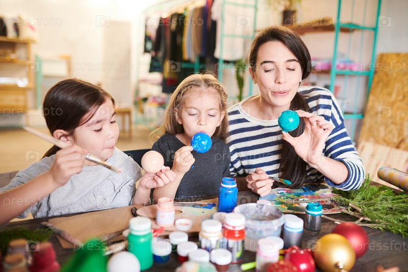 Дети, девочки делают рождественские украшения