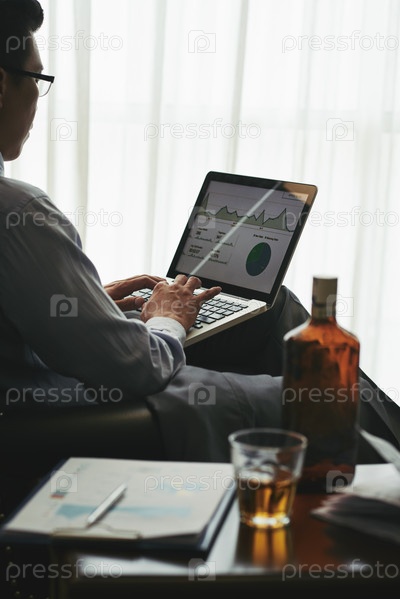 Бизнесмен, работающий и пьющий