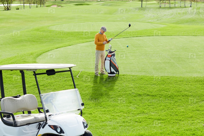 Игрок выбирает клуб для гольфа
