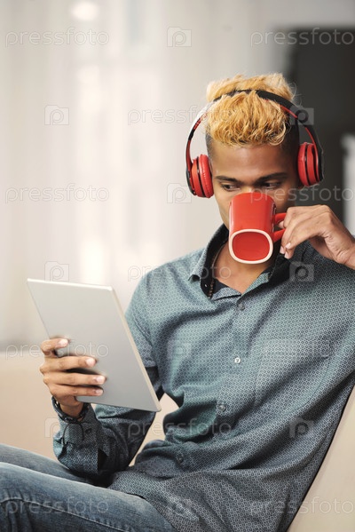 Молодой человек читает новости