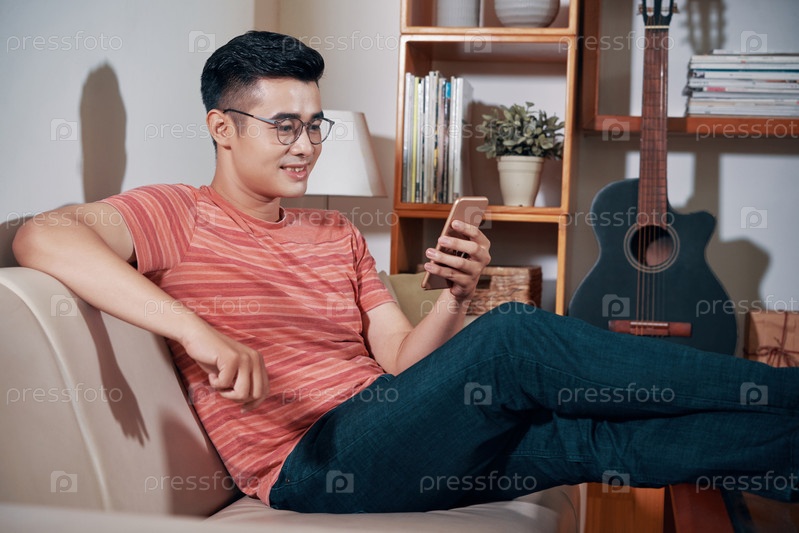 Молодой человек читает сообщения