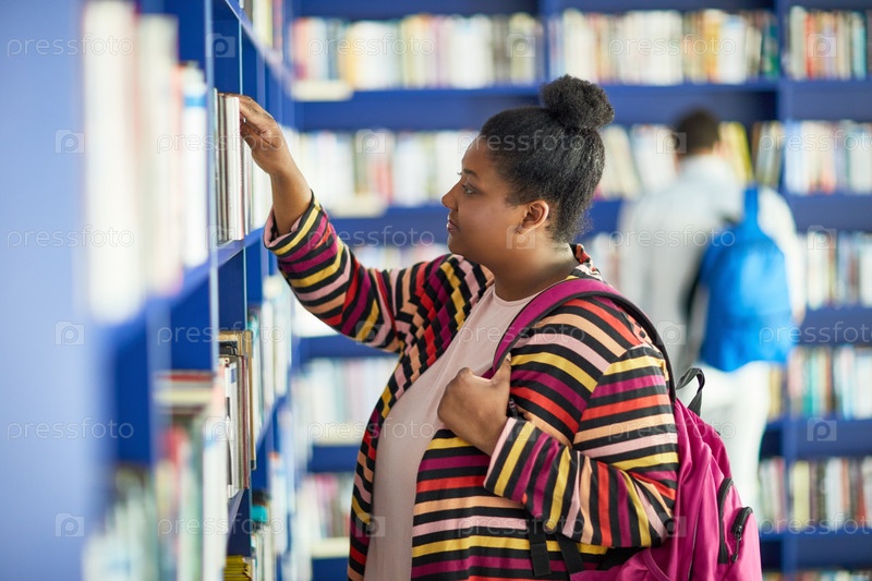 Афроамериканский студент в библиотеке Толстый