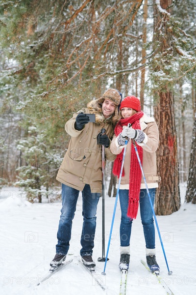 Молодая пара делает селфи на свидании