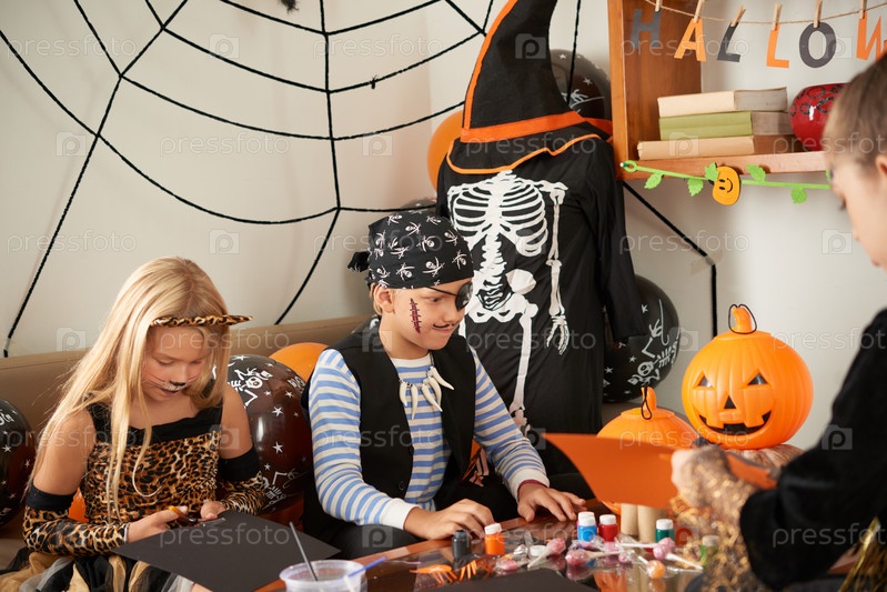 Дети готовят украшения на Хэллоуин