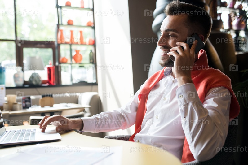 Красивый бизнесмен, получающий удовольствие от работы