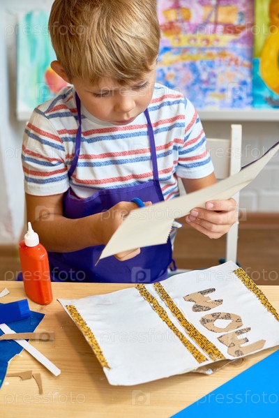 Маленький мальчик делает рукодельную открытку для мамы