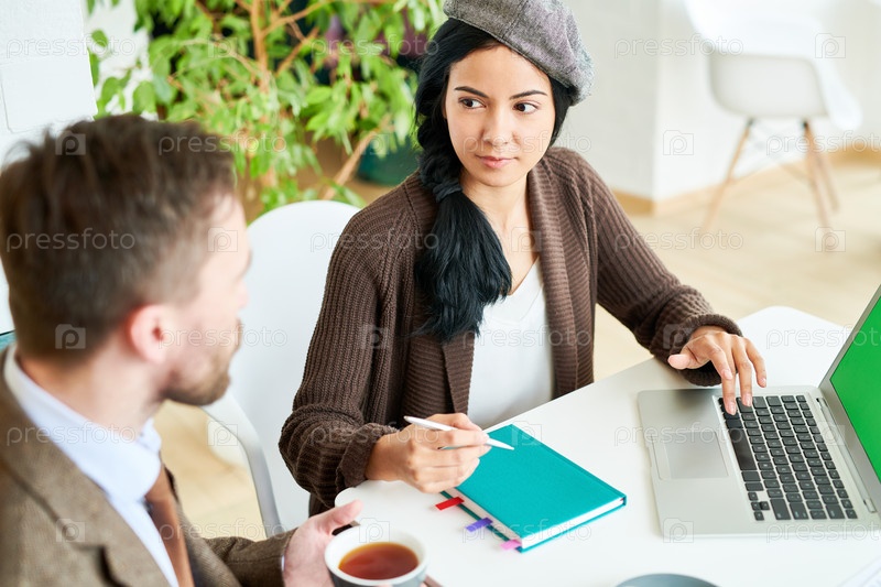 Уверенная в себе молодая женщина, ведущая встречу