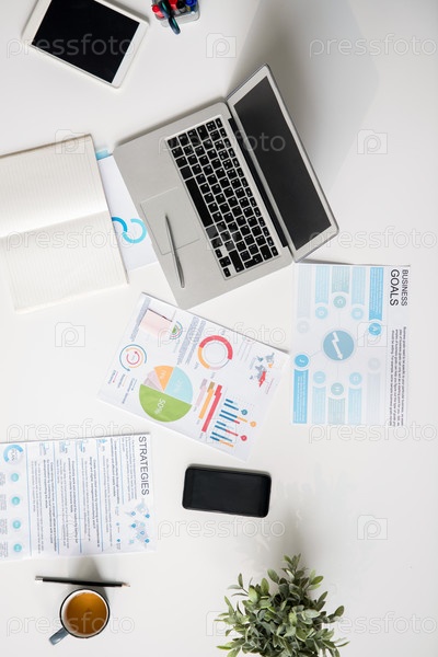 Современные устройства и статистический отчет на столе
