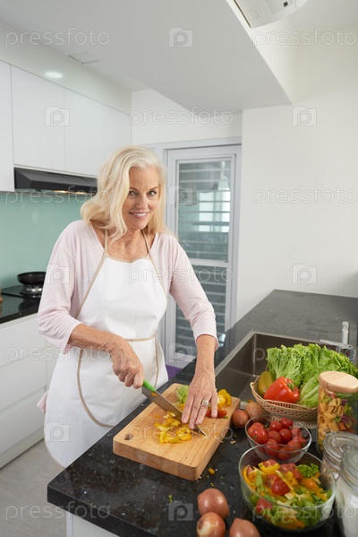 Домашняя хозяйка готовит салат