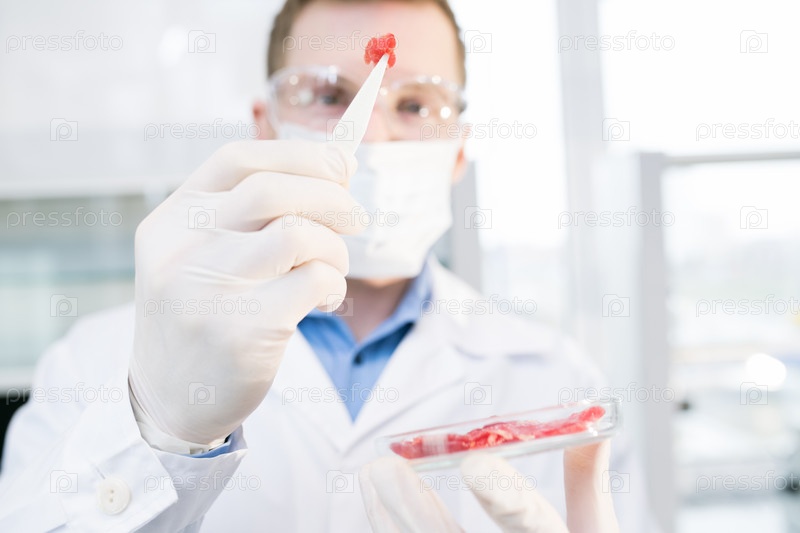 Ученый держит образец мяса