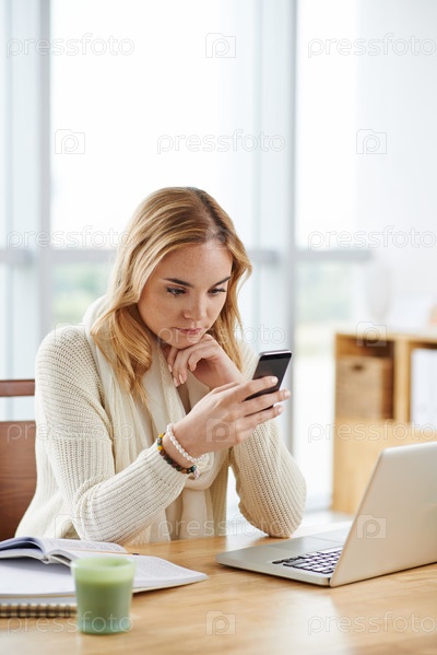 Женщина читает важное текстовое сообщение