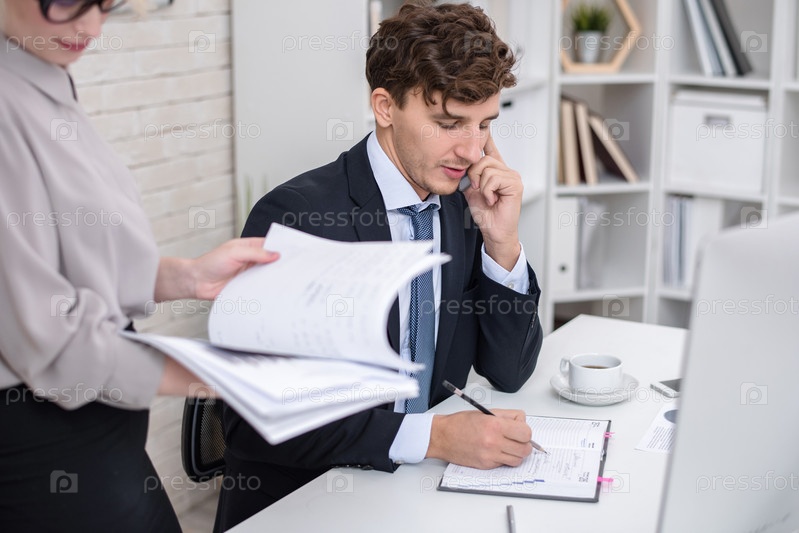 Молодой бизнесмен занят работой в офисе