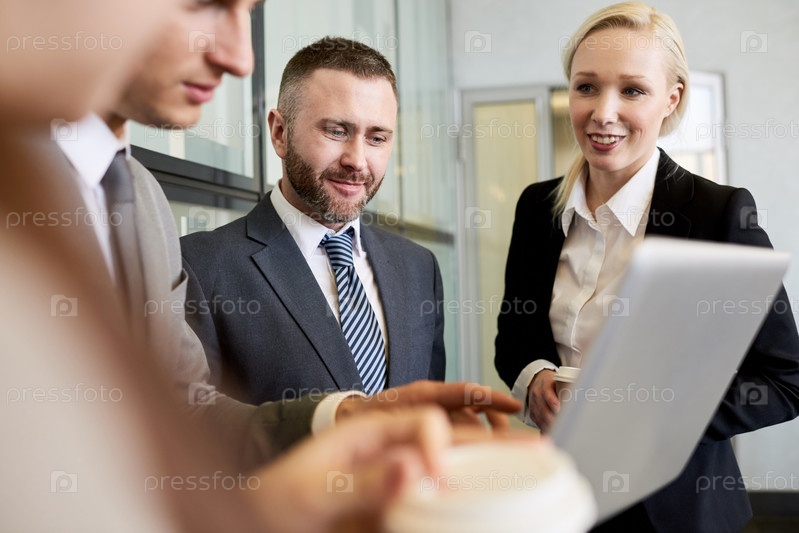Улыбающиеся деловые люди работают