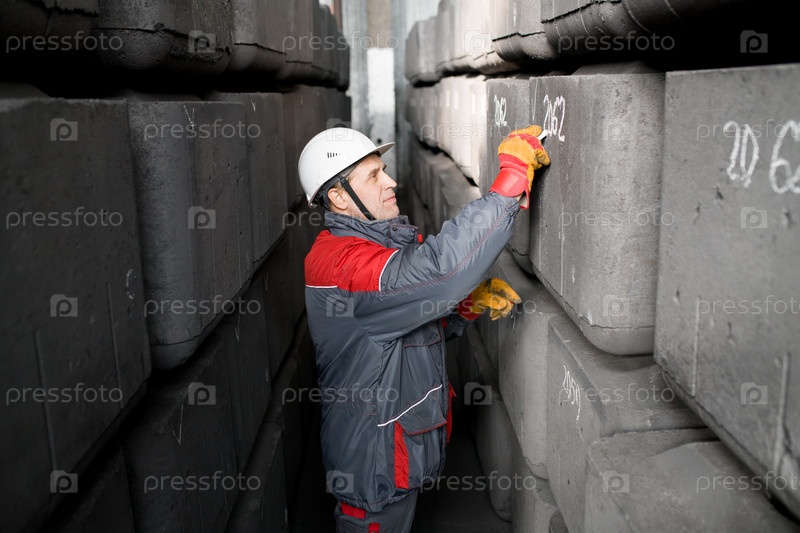 Зрелые рабочие маркируют материалы на заводе
