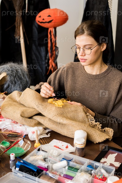 Сшивание осенних листьев на шерстяной ткани