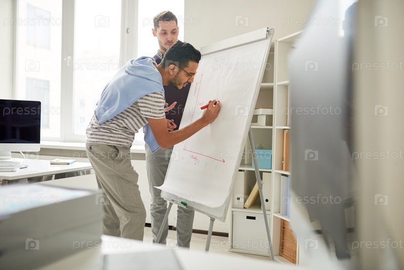 Молодые предприниматели пишут на доске