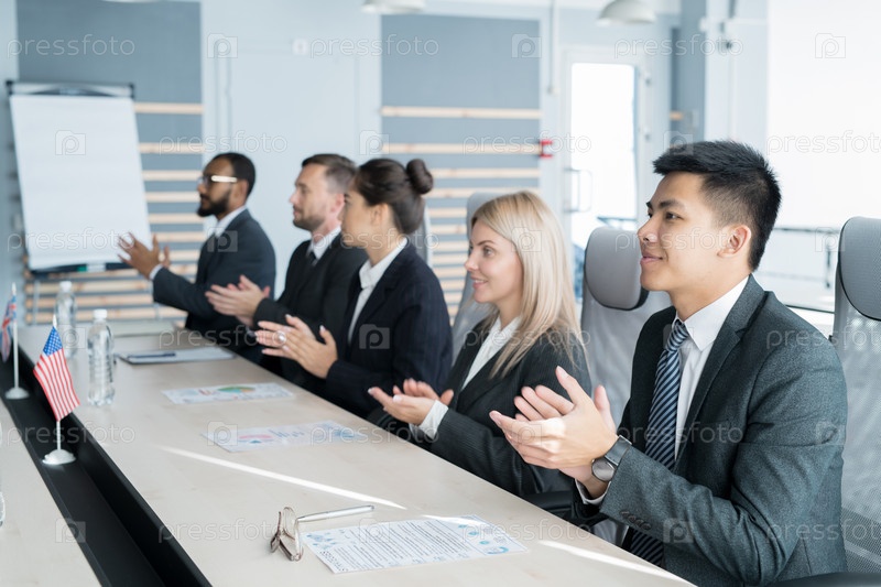 Аплодирующий спикер на международной конференции
