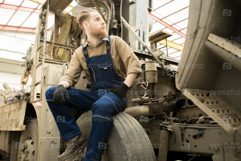 Ремонтник отдыхает на грузовике