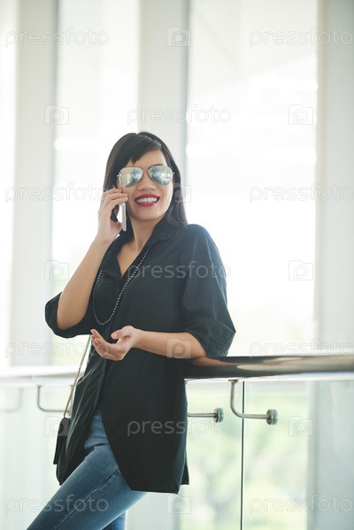 Стильная женщина получает телефонный звонок