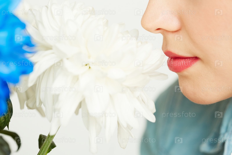 Наслаждаясь запахом белого хризантема