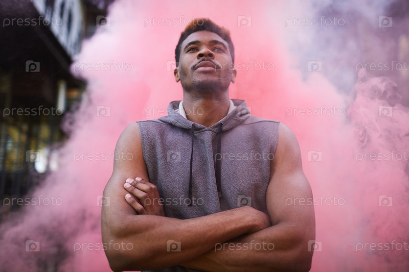 Уверенный в себе красивый чернокожий спортсмен