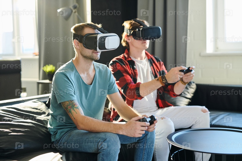 Мужчины играют в виртуальной видеоигре